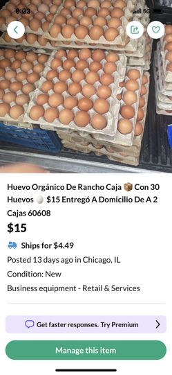 30. Huevos 🥚 Orgánico = A 2 Dozen I 1/2. $15. Para El Proxsimo Sábado Domingo. Lunes. Martes. $15Chicago, IL