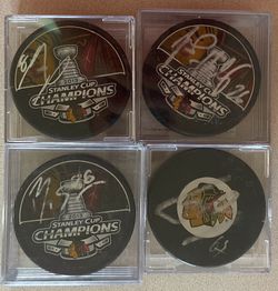 4 autographed Chicago Blackhawks pucks (1 with COA)$50Lowell, IN