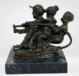 Antique Bronze Sculpture- Tug of War Children Signed SJ Natural Patina Statue $110Wheeling, IL