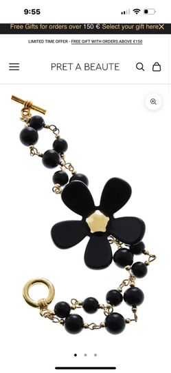 Black Resin Flower Gold Tone With Black Glass Beads Bracelet Andrew Hamilton$19Oceanside, CA