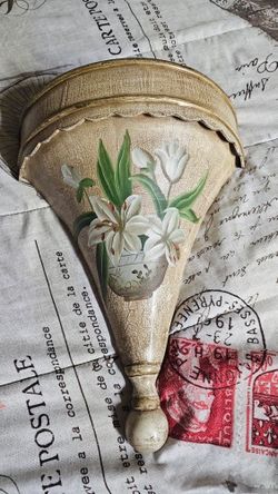 vintage-style wall-mounted planter with painted white lilies$30Fort Worth, TX