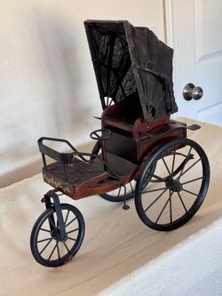 Victorian Wooden & Metal 3-Wheel Doll Carriage Buggy w/ Black Canopy$90Lemon Grove, CA