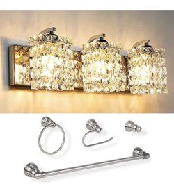 3-Light Crystal Strand Vanity Light, 5-Piece All-in-One Bathroom Set Brand Hykol$68Boca Raton, FL