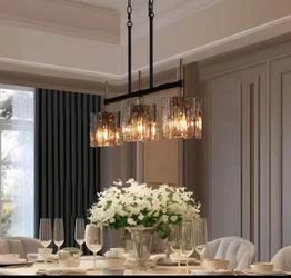 🔥Echonalyri Modern Island Glam Matte Black Brass Chandelier Textured Glass$220San Diego, CA