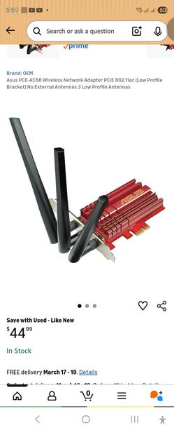 ASUS PCE-AC68 AC1900 Dual-Band Wireless PCI-E Adapter