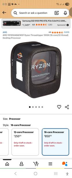 AMD Ryzen Threadripper 1st Gen - Ryzen Threadripper 1950X Whitehaven (Zen) 16-Core / 32 Threads 3.4 GHz Socket sTR4 180W YD195XA8AEWOF Desktop Process$85Garden Grove, CA