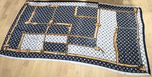 Authentic Louis Vuitton Monogram Silk Scarf 90cm – Black & Gold Belt Print$220Tujunga, CA