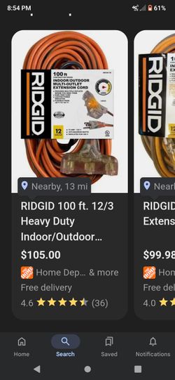 RIDGID 12/3 100' 3 OUTLET EXTENSION CORD $50Madera, CA