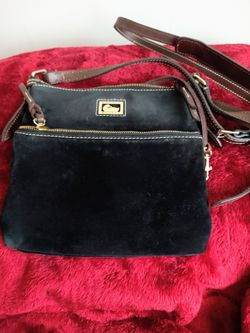 Vintage Dooney & Bourke Black Suede and Leather crossbody bag with Red Interior$40Westmont, IL