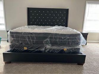 ♥️ Brand New Black Diamond Tufted King And Queen Size Nailhead Trim Leather Headboard, Bed Frame - Mattress + Box Spring • Pay After Delivery 🚚$375Atlanta, GA