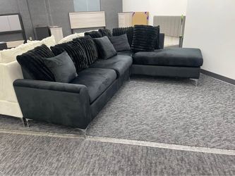 😍🔥 Brand New Black Upholstered L Shape Sectional Sofa With Chaise & Pillows | Pay After Delivery 🚚$599Atlanta, GA