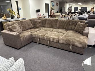 🤎 Brand New Luxury Huge Corduroy Fabric Sectional Sofa W/ Pillows, Storage, Charging Ports, Pull Out Bed & Cup Holders. $1,299Atlanta, GA
