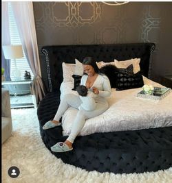 😍👑 Brand new black luxury tufted upholstered king and queen size round/circle platform storage bed frame - opt Mattress • Pay after delivery 🚚$875Atlanta, GA
