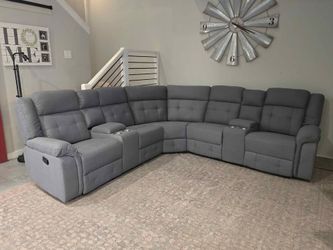 πβοΈBrand New Upholstered Fabric Grey Curve/Corner Recliner Sofa W/ Cup Holders | Pay After Delivery π$899Atlanta, GA