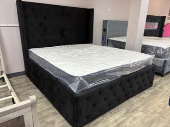 🖤 Brand New Black Upholstered Tufted King And Queen Size Platform Bed Frame/Headboard - Opt Mattress • Pay After Delivery 🚚$445Atlanta, GA