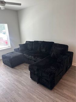 🔥🖤 Brand New Luxury Oversized Black Corduroy Fabric U Shape Sectional Couch With Pull-Out Sleeper Bed, Storage Space • Pay After Delivery 🚚$950Atlanta, GA