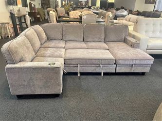 π Brand new comfortable huge beige U shape sleeper pull out sectional sofa W/ pull out bed, Charging ports, Storage Space & Cup holders | Pay after d$795Atlanta, GA