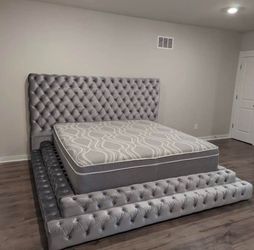 π π©Ά Brand new luxury upholstered grey queen size step bed frame - opt mattress | Pay after delivery π$699Atlanta, GA
