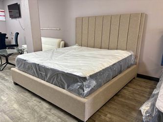 Brand new beige/cream upholstered fabric platform king and queen size bed frame/headboard - opt mattress | Pay after delivery π$375Atlanta, GA