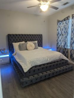 ππ Brand New Grey Platform Step Upholstered, Tufted Headboard, Round Storage Bed Frame - Mattress $850Atlanta, GA
