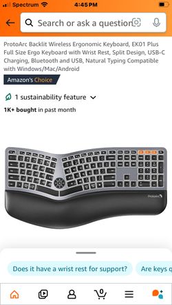 ProtoArc Backlit Wireless Ergonomic Keyboard $60Florissant, MO