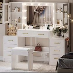 42.5” MakeUp Vanity Table with Lighted Mirror, 2 Drawers, Shelves And Stool$200Duluth, GA