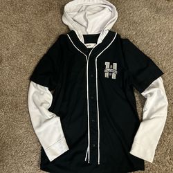 Black And White Baseball Jersey With Hoodie$15Richmond, TX