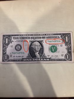 Rare one dollar bill with repeating Serial Number and printing error series 2013$50La Habra Heights, CA