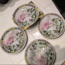 4 Vintage Small Porcelain Hand Painted Japanese Plate Saucers Gorgeous!$20Philadelphia, PA