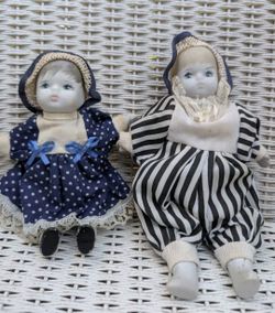 2 Porcelain Dolls 7" Hanging Ornament W/ Blue Fabric Dress Bonnet & Apron$20Philadelphia, PA
