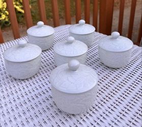 Asian Art Floral Embossed Saki Chinese Tea Cups No Handles Solid White Set Of 6$20Philadelphia, PA
