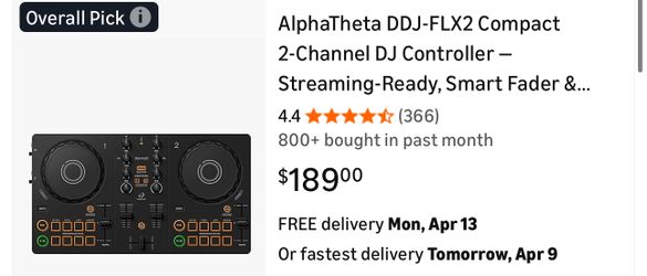 AlphaTheta DDJ‑FLX2 Compact 2‑Channel DJ Controller$125Los Angeles, CA