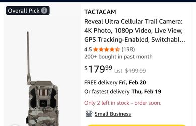 Reveal Ultra Cellular Trail Camera: 4K Photo$90Los Angeles, CA