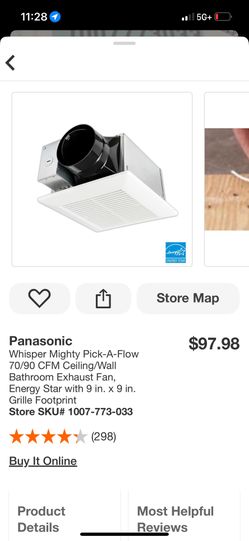 Panasonic Whisper Mighty Pick-A-Flow 70/90 CFM Ceiling/Wall Bathroom Exhaust Fan, Energy Star with 9 in. x 9 in. Grille Footprint$49Phoenix, AZ