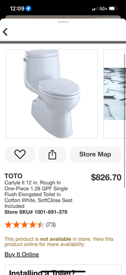 TOTO Carlyle II 12 in. Rough In One-Piece 1.28 GPF Single Flush Elongated Toilet in Cotton White, SoftClose Seat Included$550Phoenix, AZ
