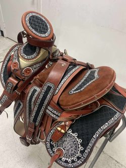 Montura charra forrada de cuero con cantinas desmontables$790Oxnard, CA