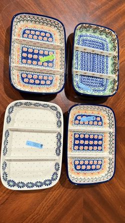 Ceramika Artystyczna Polish Pottery Divided Dish Lot 4 Boleslawiec UNIKAT$150Burleson, TX