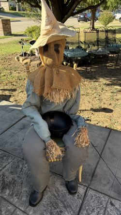 4 ft 8in halloween spooky sitting Scarecrow Animatronic with chair and candy bucket $80Burleson, TX