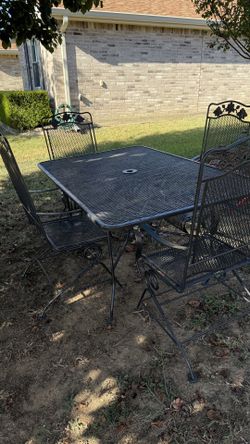 Wrought Iron 5 Piece Outdoor Patio Furniture Dining Set With 4 Coil Spring Rocking Chairs And Rectangular Table $350Burleson, TX