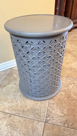 23” modern gray wooden round Distressed Global Drum End Table accent table garden stool boho $60Burleson, TX