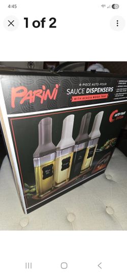 PARINI 4PC AUTO-POUR SAUCE DISPENSERS WITH WOOD TRAY, NIB$5Yorba Linda, CA