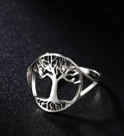 1pc Women's Stainless Steel Hollow Out Tree Of Life Couple Ring Talisman Jewelry Gift For Anniversary And Wedding, New Arrival$18Bayonne, NJ