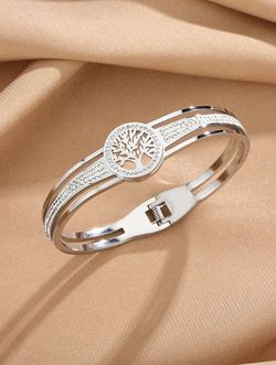 1pc Popular Stainless Steel Vacuum Plating Tree Of Life Bracelet, Simple And Versatile High-End Luxury, Exquisite And Creative, Ideal For Daily, Valen$20Bayonne, NJ