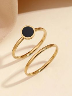 2pcs Stainless Steel Fashionable And Simple Style Ladies Black Plate Various Shapes With Plain Ring Set, Suitable For Ladies To Wear Daily Or Give As $18Bayonne, NJ