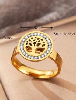 Stainless Steel Ring With Stylish Crystal Money Tree Decor, Suitable For Women's Wedding, Hollow Out Jewelry Gift$20Bayonne, NJ