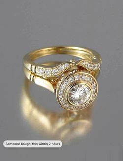2 Pcs Halo Ring Inlaid Shiny Cubic Zirconia 18K Gold Plated Party Engagement Bride Wedding Ring Jewelry$25Bayonne, NJ