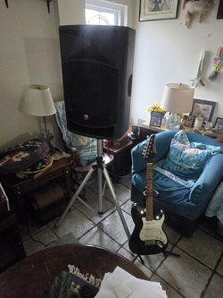 A Silvertone electric guitar and Harbinger VaRi V2115 powered loudspeaker.$280Albuquerque, NM