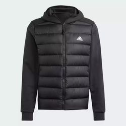 adidas men Essentials HYBRID DOWN HOODED JACKET Large Black HZ4430