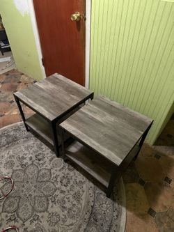 Set of 2 Rustic Wood End Tables with Storage Shelf – Modern Industrial Style$110Boston, MA