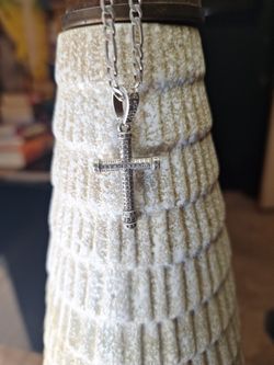 1 SILVER NECKLACE WITH TRANPARENT FLOWER ORB SET IN SILVER AND 1 CUBAN CHAIN$89Fairview, TN